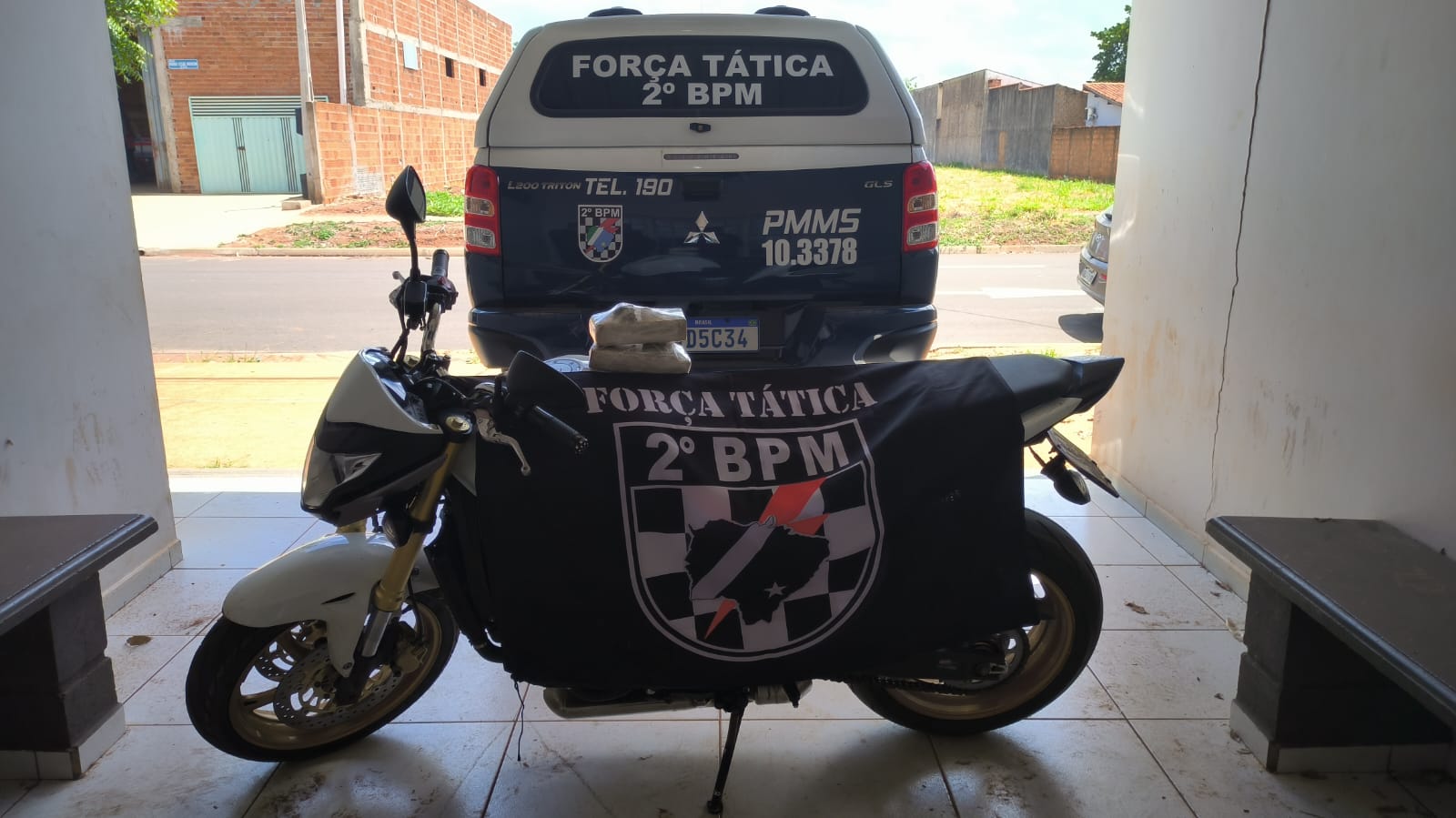 Já em acompanhamento tático, os militares perceberam que o rapaz jogou um objeto que estava preso no guidão da moto e estava dentro de uma sacola. Mesmo assim, o acompanhamento continuou até a Rua Manoel Custódio de Queiroz onde a abordagem foi feita. Com ele, nada de ilícito foi encontrado, mas na sacola que jogou durante a fuga, foram localizados dois tabletes de maconha, pesando 1kg.