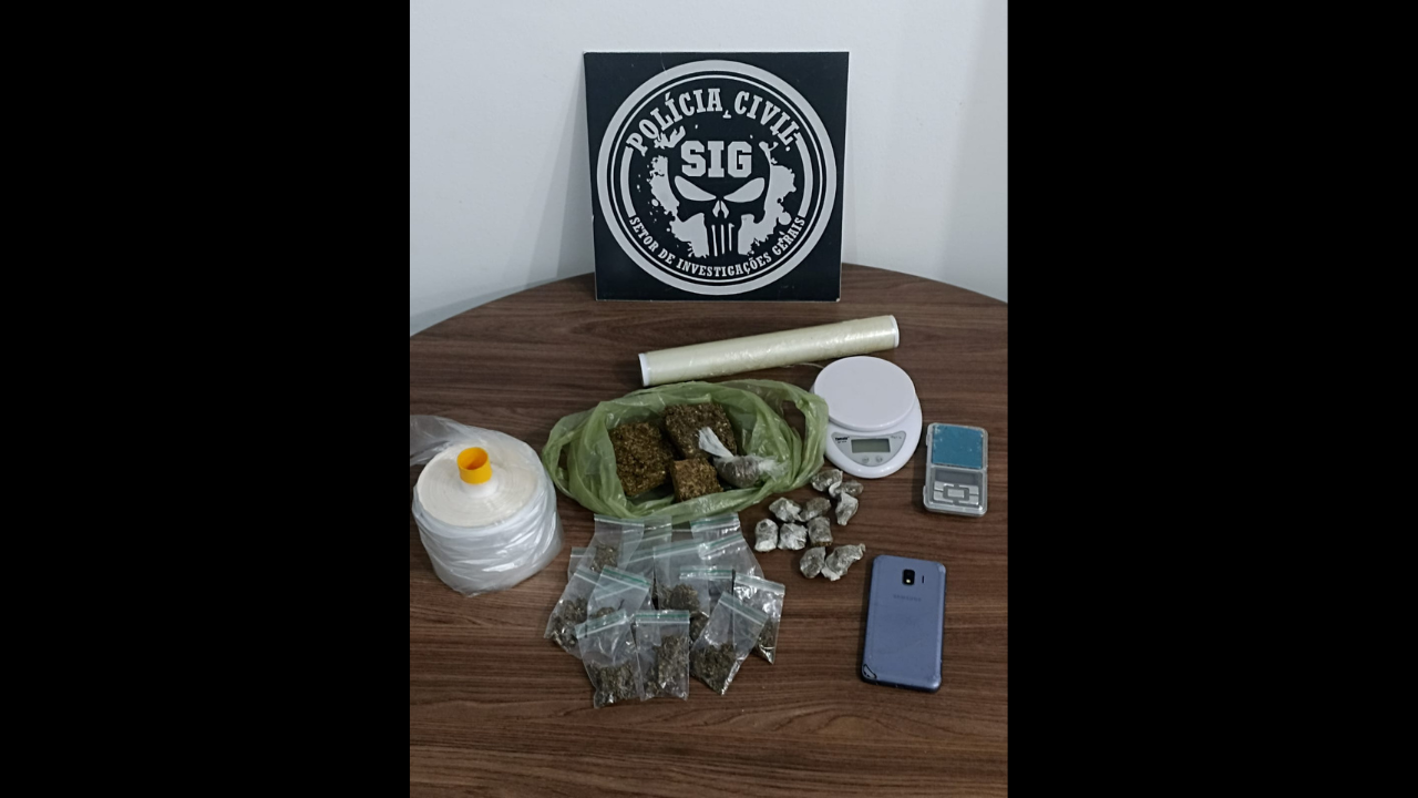 Em uma vistoria no local, os investigadores encontraram uma mochila com uma grande quantidade de maconha, que estava distribuída em tabletes e prontas para o tráfico, além de instrumentos usados no preparo, como balanças de precisão e material plástico. Durante oitivas, o suspeito assumiu a prática do crime.