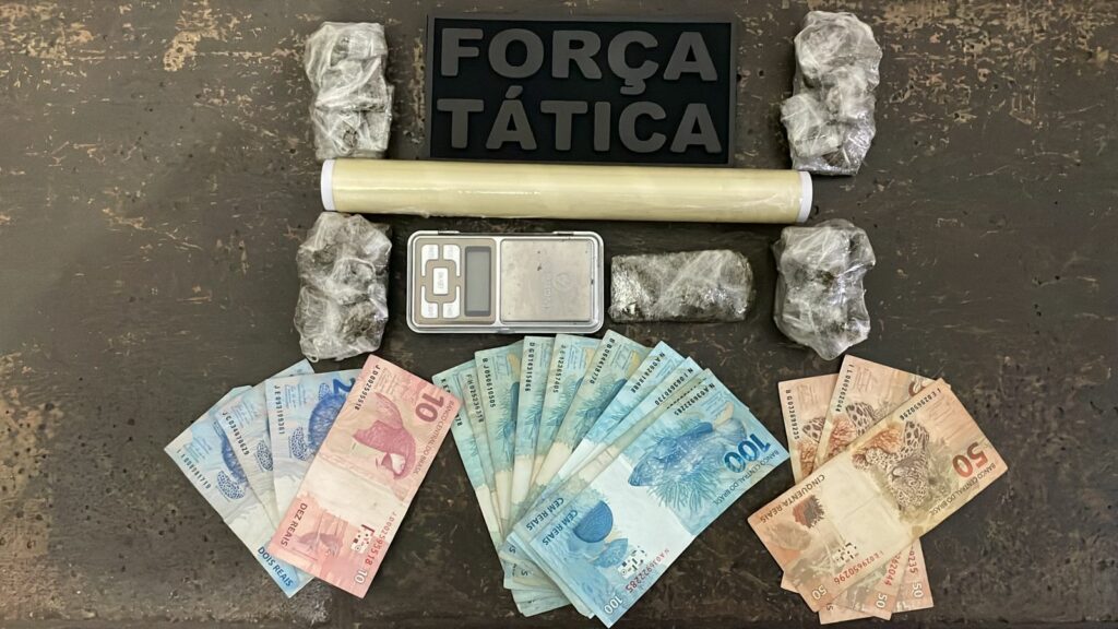 Por volta das 16h45, a equipe intensificou rondas na área indicada e avistou dois indivíduos no local suspeito. Ao serem abordados, ambos tentaram fugir, mas foram rapidamente capturados. Durante a ação, um dos suspeitos, de 29 anos, foi flagrado arremessando uma sacola no quintal, que continha cinco porções de maconha prontas para venda. Com ele, também foram encontrados R$ 1.166 em dinheiro.