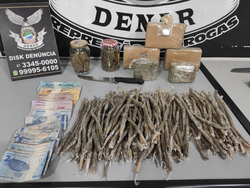 Os suspeitos então foram presos, cada um em uma casa, aprendendo 159 porções de maconha e 31 porções de pasta base de cocaína, além de balança de precisão e dinheiro fruto do tráfico.
