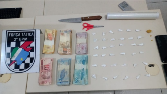 Diversas porções de crack e cocaína foram apreendidas, além de R$ 2.148,00