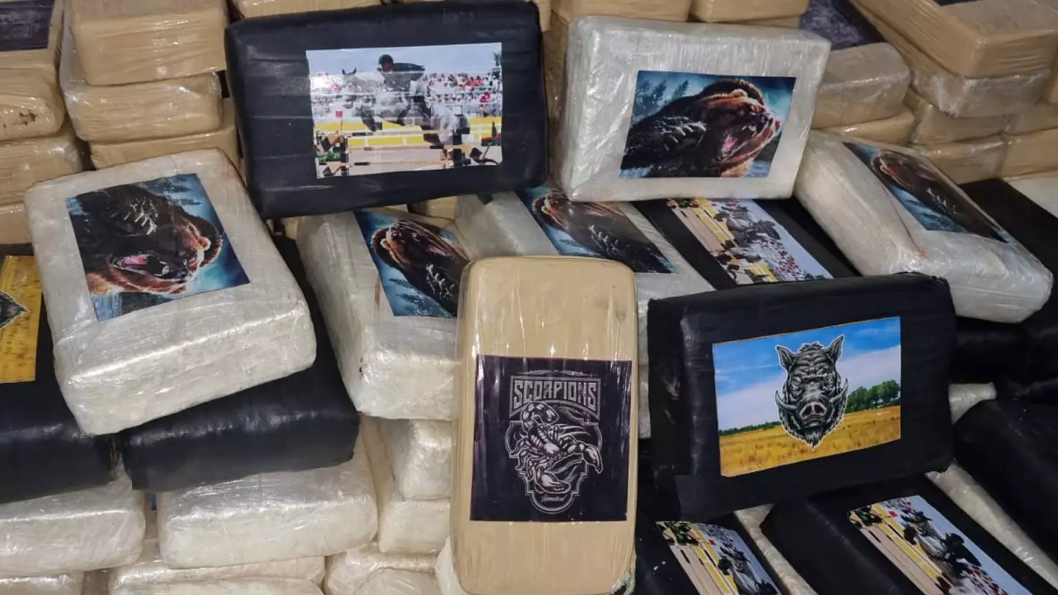 A cocaína tinha imagens de escorpião, urso e javali
