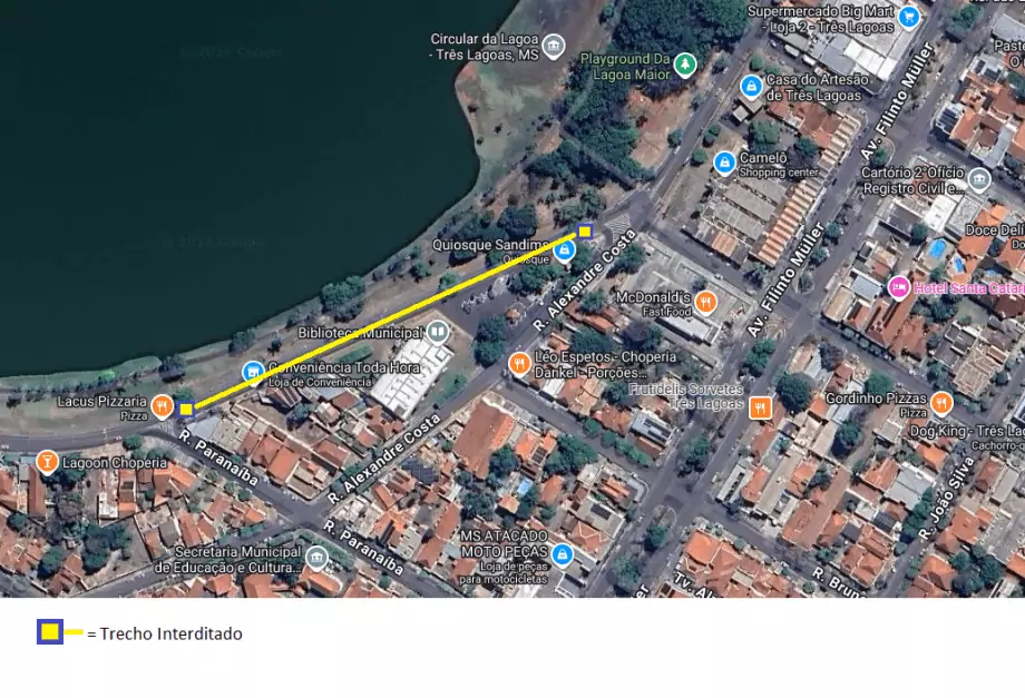 Nos dias 12 a 18 de fevereiro, durante a preparação e a organização do evento, um trecho da rua Aldair Rosa será interditado, conforme sinalizado na imagem abaixo: