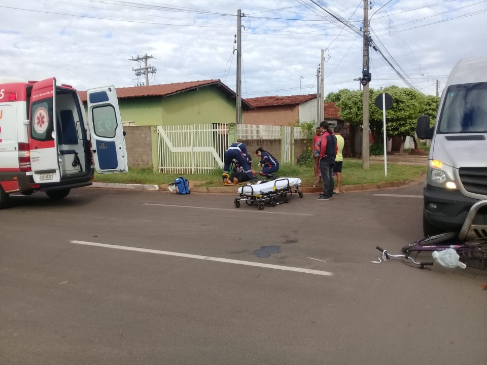 Um acidente de trânsito registrado na manhã desta quarta-feira (20) deixou uma ciclista ferida no Bairro Vila Terezinha, em Três Lagoas (MS). Um motorista de um transporte coletivo invadiu a preferencial e atropelou a ciclistas.