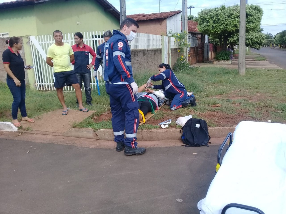 A vítima foi socorrida pelo SAMU até a UPA com escoriações e suspeita de fratura no punho.