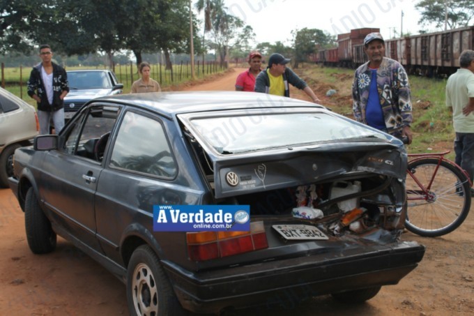 O automóvel também foi atingido pelo trem na lateral direita na parte traseira. No interior do carro haviam quatro pessoas, conforme os bombeiros, mas ninguém se feriu com gravidade.