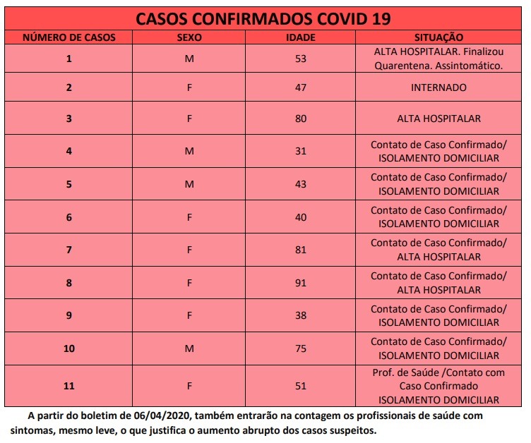 Ainda na comparação, reduziu o número de casos em investigação de 6 para 3, mas subiu de 9 para 11 os casos confirmados. Os casos descartados passaram de 43 para 49 e os excluídos seguem com 02 casos e nenhum óbito.