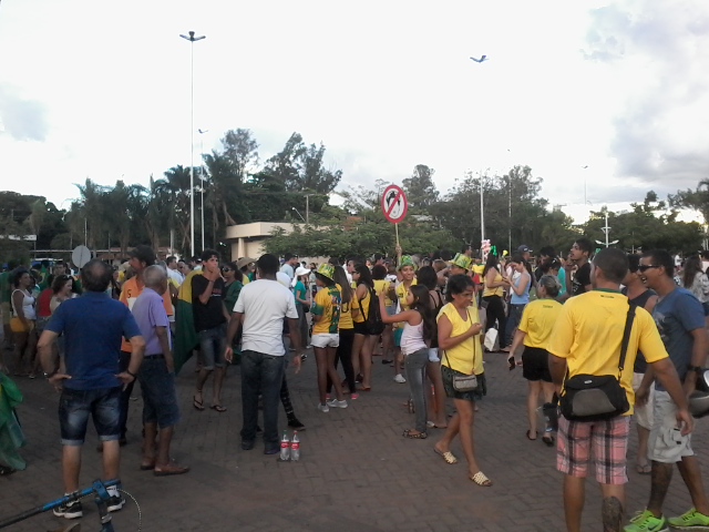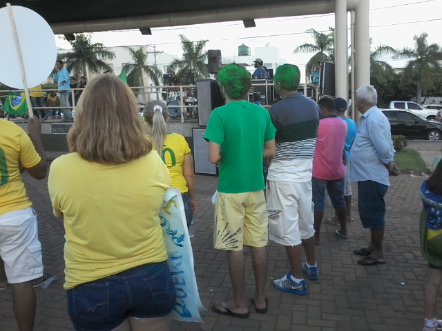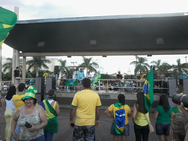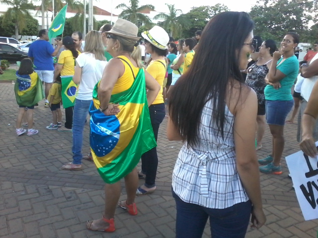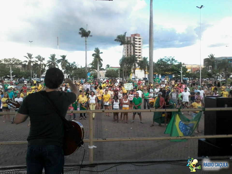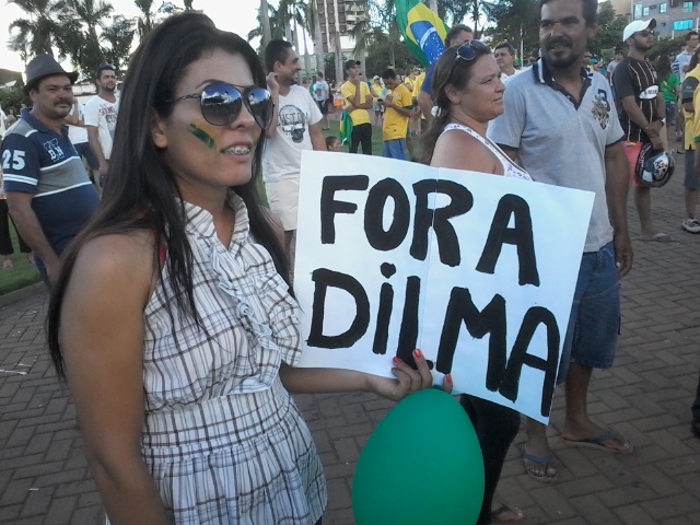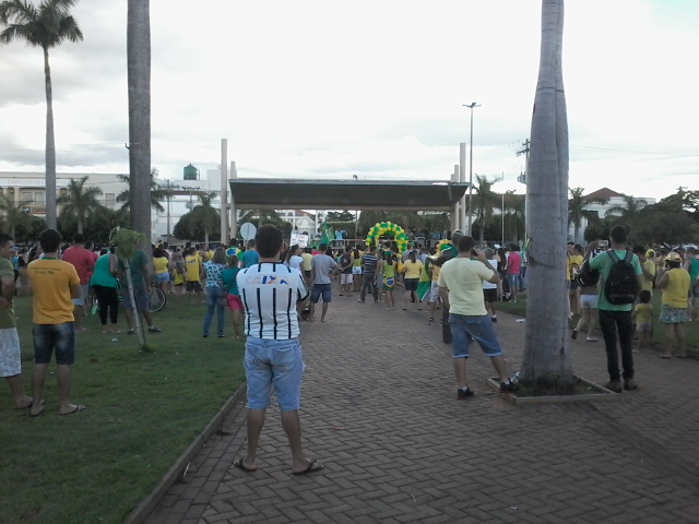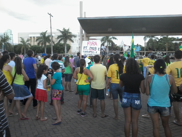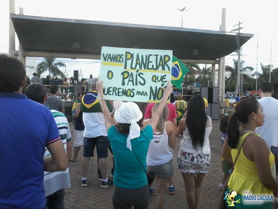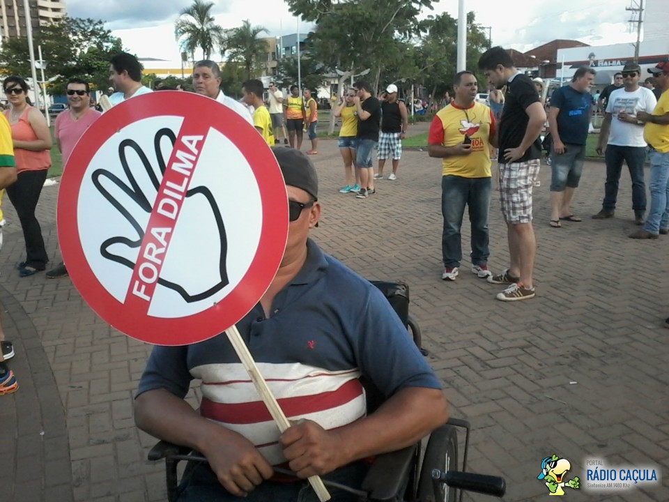 Aproximadamente 5.000 pessoas reuniram-se na Praça Ramez Tebet, na tarde de ontem, por volta das 15h para protestarem de maneira pacífica contra o Governo Dilma, contra a corrupção, para pedir a punição exemplar dos envolvidos na Operação Lava-Jato, contra os juros exorbitantes, à inflação e também contra a administração da atual prefeita da cidade Márcia Moura (PMDB).