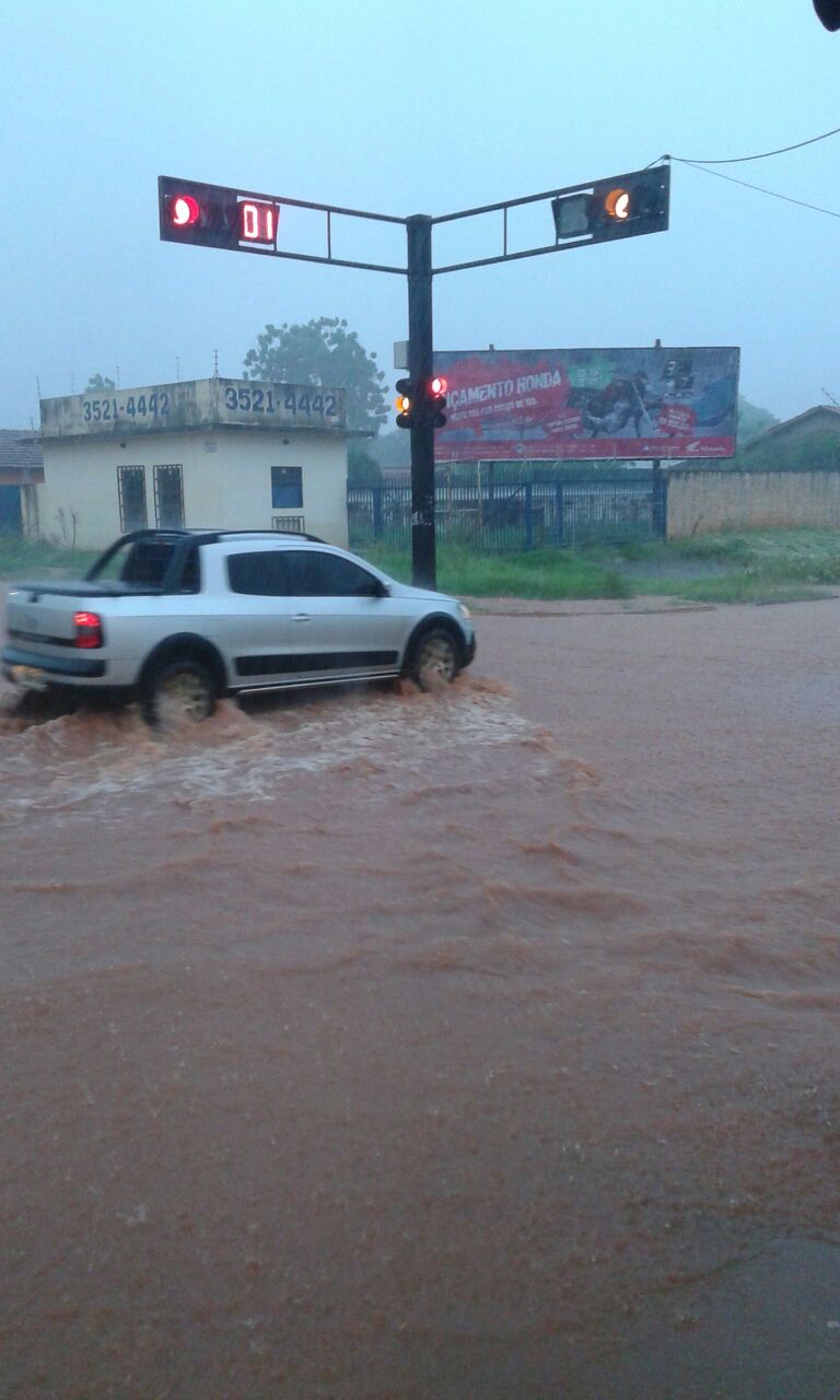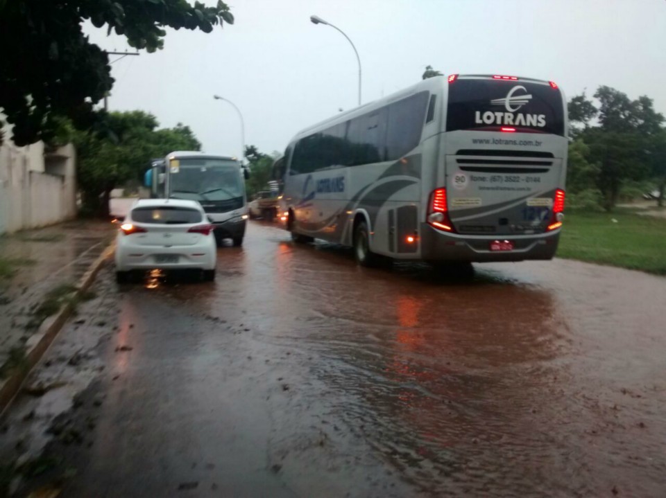 Diversos pontos de alagamento foram registrados, onde condutores seguiam na contra mão das principais vias de Três Lagoas (MS) para evitarem que seus veículos atolassem nos diversos buracos que há nas vias.