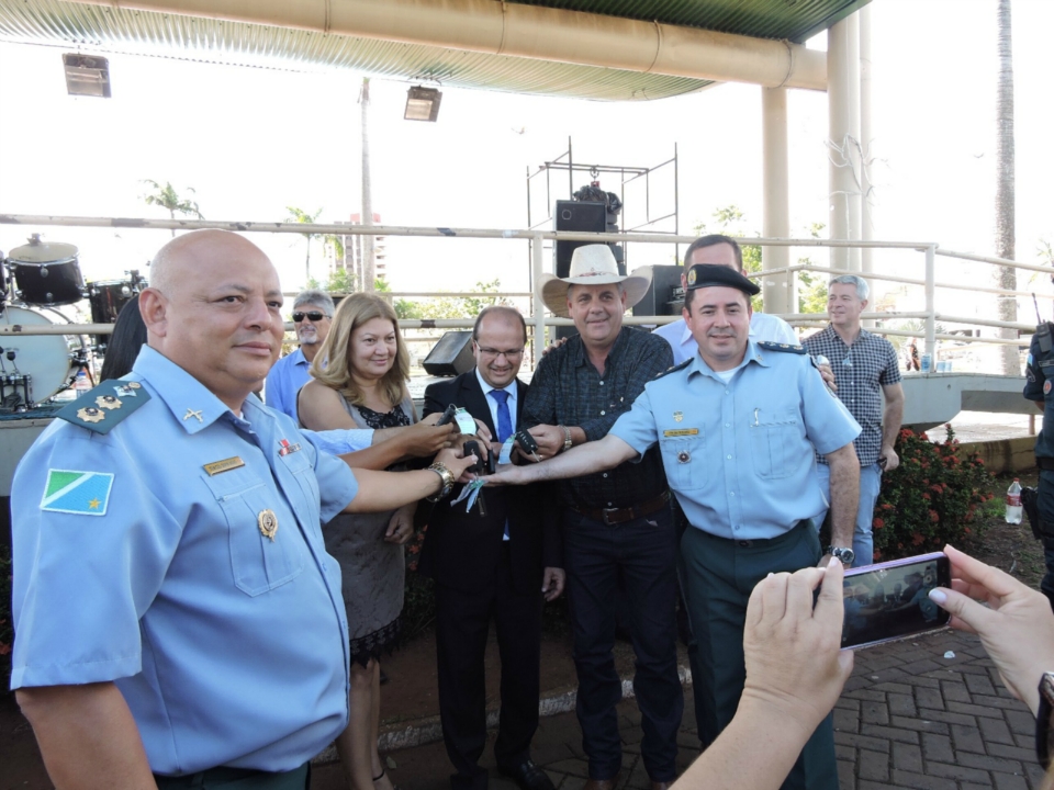 A cerimônia foi realizada na Praça Ramez Tebet e contou com a presença de autoridades do município que presenciaram a entrega de 14 veículos ao comandante do 2º Batalhão de Polícia Militar, sendo sete motocicletas de 250 cilindradas e 2 de 660 cilindradas, quatro SUV – Jeep Renegade – e uma van Ducato, que serão utilizados para intensificar o policiamento dos bairros e tornar a cidade cada vez mais segura.