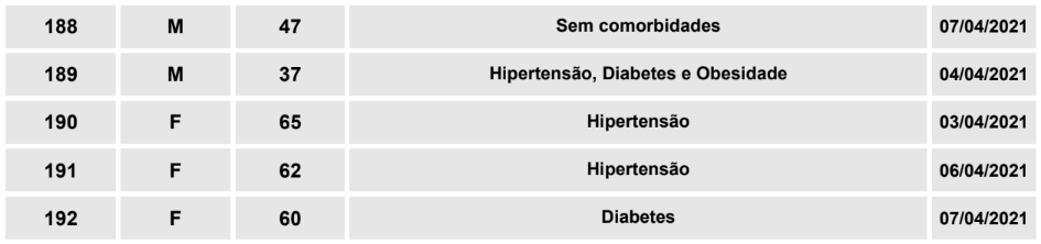 Mais 276 pessoas foram confirmadas como positivas, sendo que dessas, 16 casos foram excluídos do E-SUS por exportação para SIVEP ou outra localidade, totalizando 11.038 casos da doença. Outras 68 pessoas finalizaram a quarentena e foram consideradas recuperadas da doença.