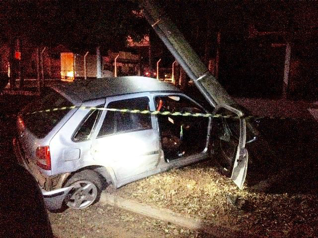 Desgovernado, o condutor ainda percorreu por quase 100 metros atingindo um poste de eucalipto que fica na esquina da avenida com a Rua Bruno Phool.