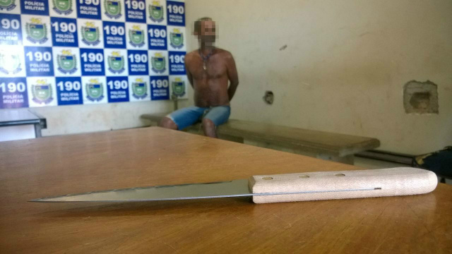 O homem apresentava sinais de embriaguez ao ser surpreendido pela polícia. Ele não usava sapatos e nem camisa. Muito confuso, o acusado disse que carregava a faca para se defender e ‘matar bandidos’. A ferramenta tinha cerca de 30 centímetros e também acabou apreendida.