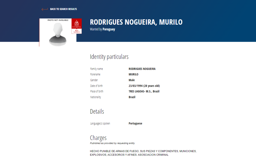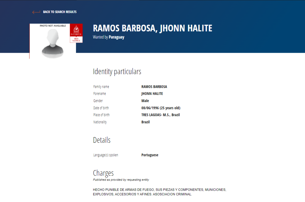 Três Lagoas (MS) possui alguns nomes nesta lista vermelha. Jhonn Halite Ramos Barbosa, de 25 anos, acusado de porte ilegal de arma de fogo e por associação criminosa, e Murilo Rodrigues Nogueira de 28 anos, que também é acusado pelo mesmo crime.