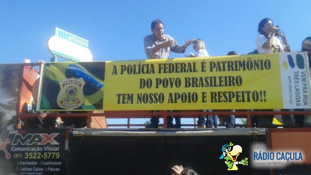 Em Três Lagoas, uma nova manifestação contra a corrupção no Brasil aconteceu nesta sexta-feira (1º). O evento foi promovido por empresários, comerciantes e membros de clubes de serviço. A organização calcula que pelo menos duas mil pessoas participaram da carreata que bloqueou a BR 262. A paralisação ocorreu na usina hidrelétrica de Jupiá, entre os estados de Mato Grosso do Sul e São Paulo. A parada dos veículos durou cerca de 50 minutos.