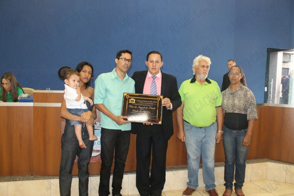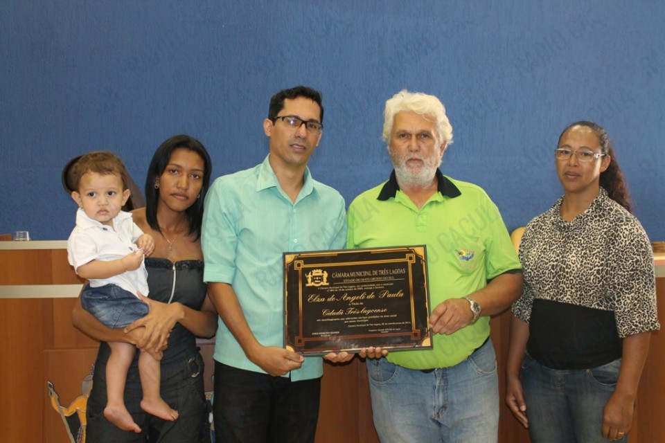 Familiares da senhora Elza de Angeli de Paula, destacada líder comunitária da região do bairro São João, receberam, por ela, o Título de Cidadã Três-Lagoense, pelos relevantes serviços sociais prestados, como a distribuição de cestas básicas, sopa, roupas, sapatos e brinquedos para pessoas carentes.