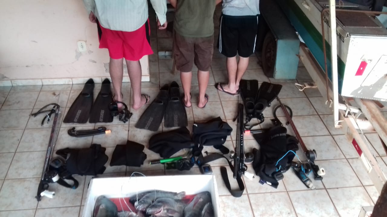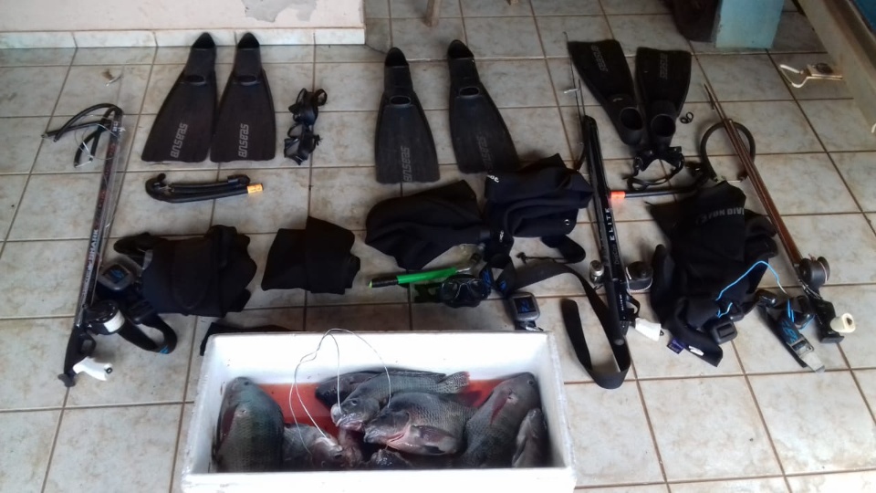 Os infratores, de 26, 33 e 38 anos, são residentes em Fernandópolis (SP) e realizavam pesca subaquática sem a licença ambiental. Com eles foram apreendidos 12 kg de pescado da espécie tilápia, um barco, um motor de popa, um tanque de combustível, três roupas de mergulho, três pares de nadadeiras, trê) arbaletes, três cintos de lastro, quatro máscaras de mergulho, três respiradores, uma touca de mergulho e uma vara com carretilha.