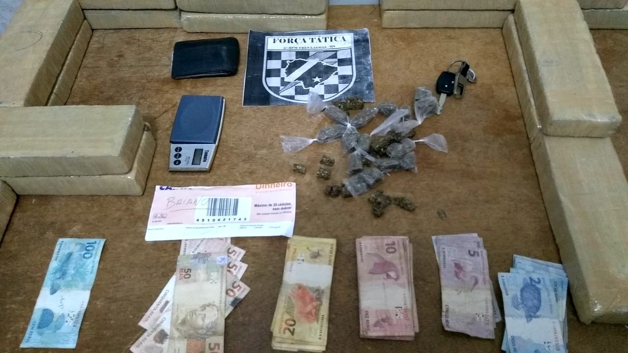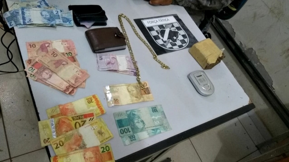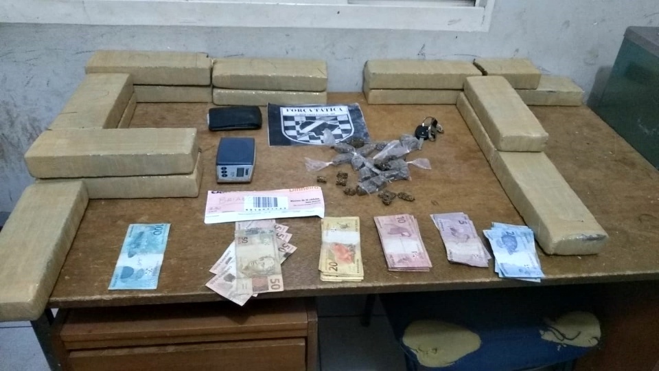Em busca pela residência, os policiais encontraram uma balança de precisão e R$ 1.002,50 em espécie. Na casa do taxista, a guarnição ainda encontrou outra balança de precisão, 29 trouxinhas de maconha, R$ 799,00 em espécie e 15 tabletes de maconha, pesando 14,765 kg.