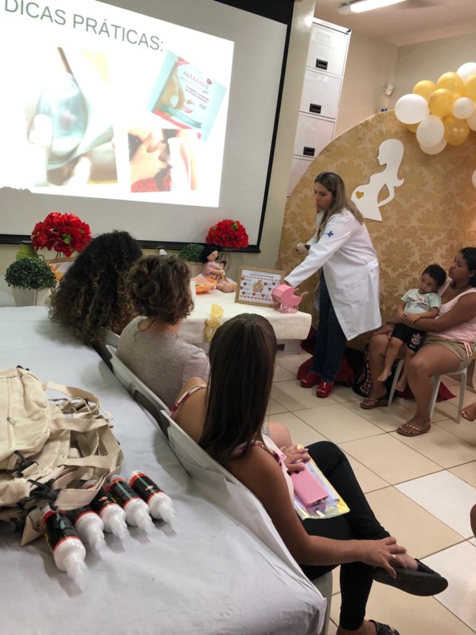 Além da palestra, as gestantes e puérperas da área de abrangência da Unidade Santa Rita tiveram um diferente café da tarde, ganharam bolsa de gestante e também repelentes contra mosquitos.