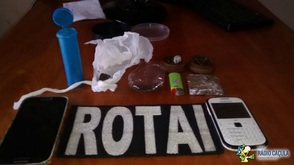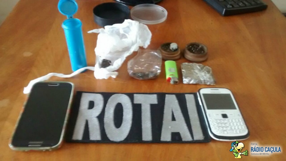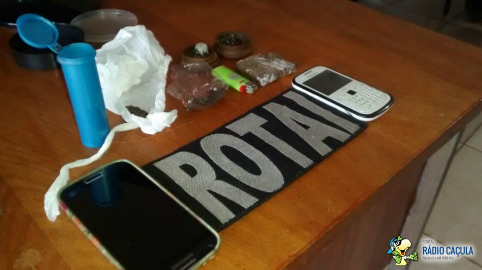 Na rua 15 de novembro avistou três indivíduos em atitude suspeito onde tentaram entrar em um residência da posse de A.R.S (24) usuário de drogas , onde após abordagem foi encontrado no bolso de D.G.F.S (22) uma porção de maconha indagou alegou ser usuário, na motocicleta de T.C.P.S (22) foi encontrado um tablete de maconha pesando cerca de 20 gramas, todos alegaram ser usuários.