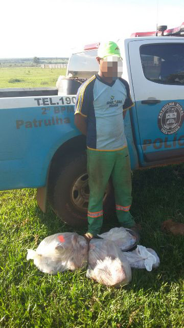 A.R.S., de 23 anos, conhecido como “Nenê” foi preso, pois juntamente com R.S.L, de 22 anos, e L.L.C. de 21 anos, estão sendo acusados de estarem envolvidos no furto e abate de uma vaca em uma fazenda as margens da MS 112, Km 24 em Selvíria.