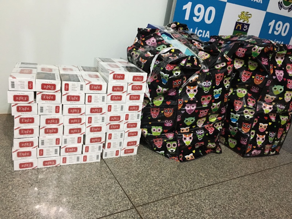 O veículo foi abordado na MS-395, nas proximidades do município de Brasilândia. No interior do carro, além das mercadorias, estavam 12 sacoleiros.