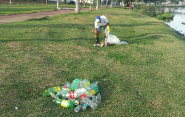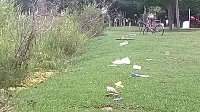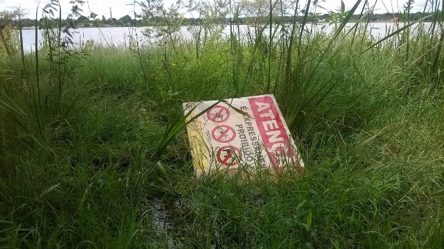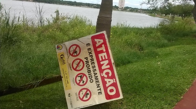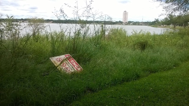 Imagens registradas neste domingo (8) mostram uma grande quantidade de sacolas plásticas por toda a volta da lagoa e como se a falta de educação de algumas pessoas não fosse o suficiente, ainda existem os vândalos que tem prazer em destruir o patrimônio público.