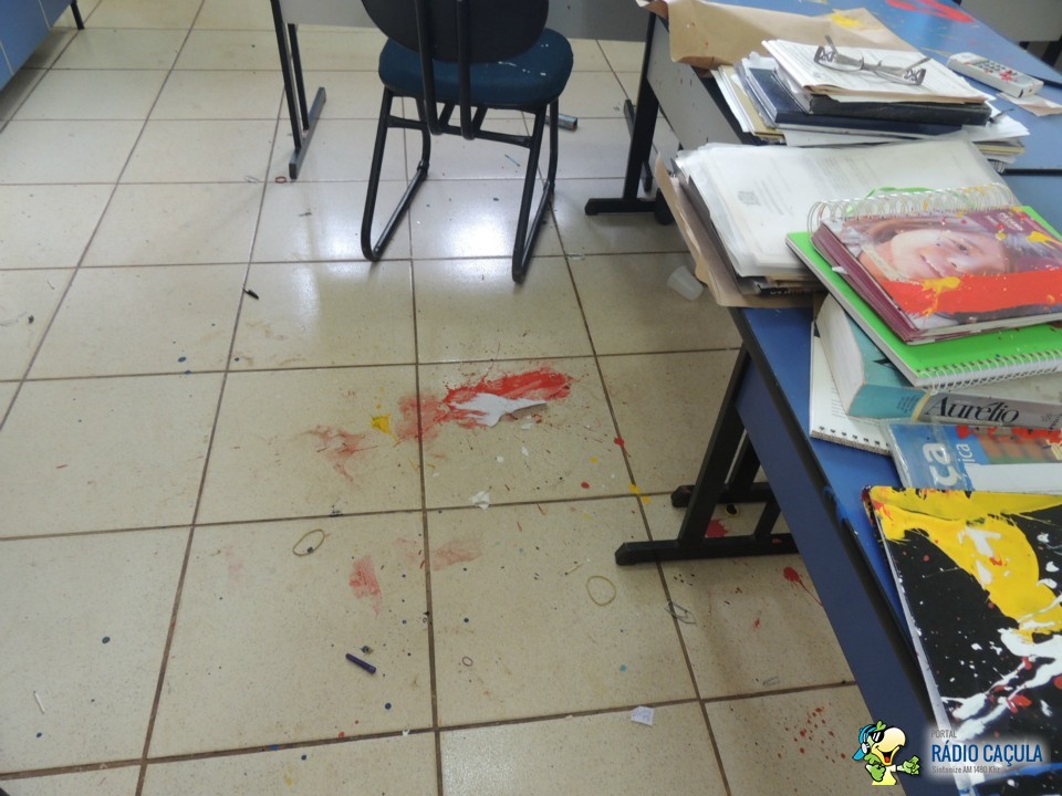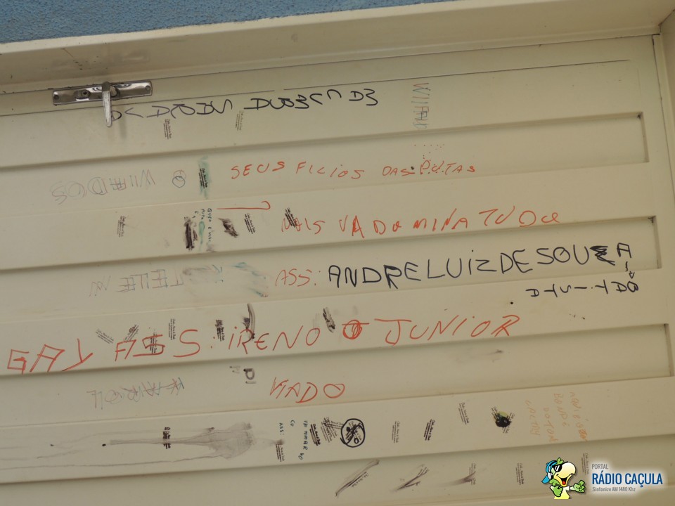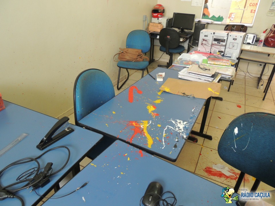 Segundo informações os jovens entraram pela cerca que se encontra deteriorada há alguns meses, os mesmos invadiram a secretária pintando carteiras, pichando paredes com palavras de baixo calão e estragando as fichas dos alunos, nada foi levado.