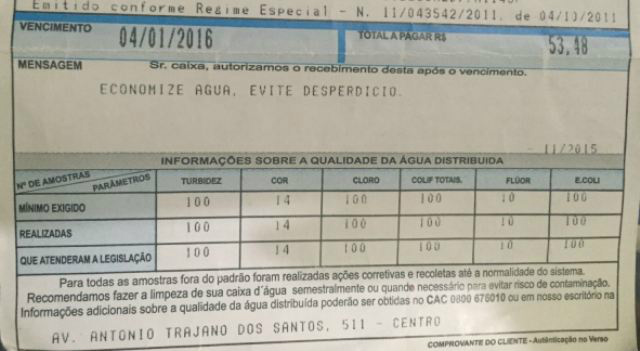 A costureira procurou a empresa de saneamento do Mato Grosso do Sul (SANESUL) assim que recebeu a conta e no escritório local foi informada pela atendente que um técnico iria até a sua residência e caso fosse constatado que vazamento em seu equipamento, possivelmente a conta seria suspensa.