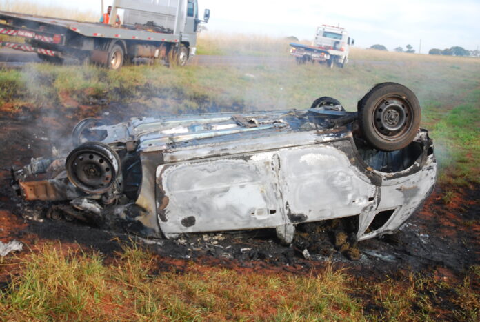 Veículo carregado com maconha pega fogo após capotar na MS-338 próximo a Bataguassu