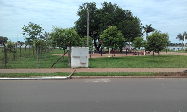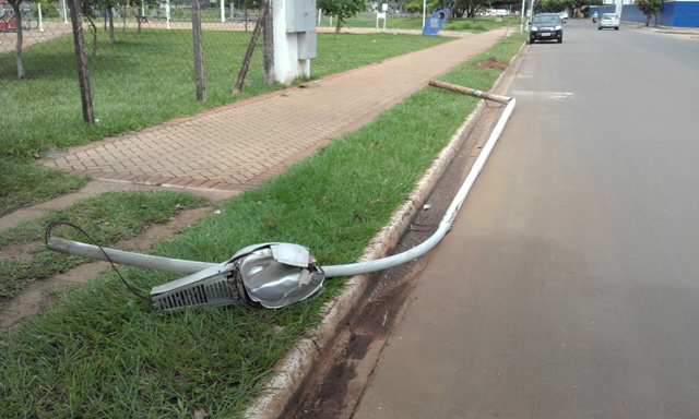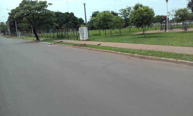 Um poste de iluminação localizado na Avenida Aldair Rosa de Oliveira, nas proximidades da academia ao ar livre, foi atingido por um veículo não identificado durante a madrugada deste sábado (21).