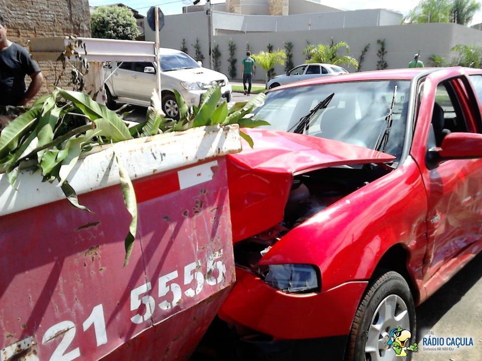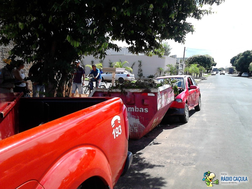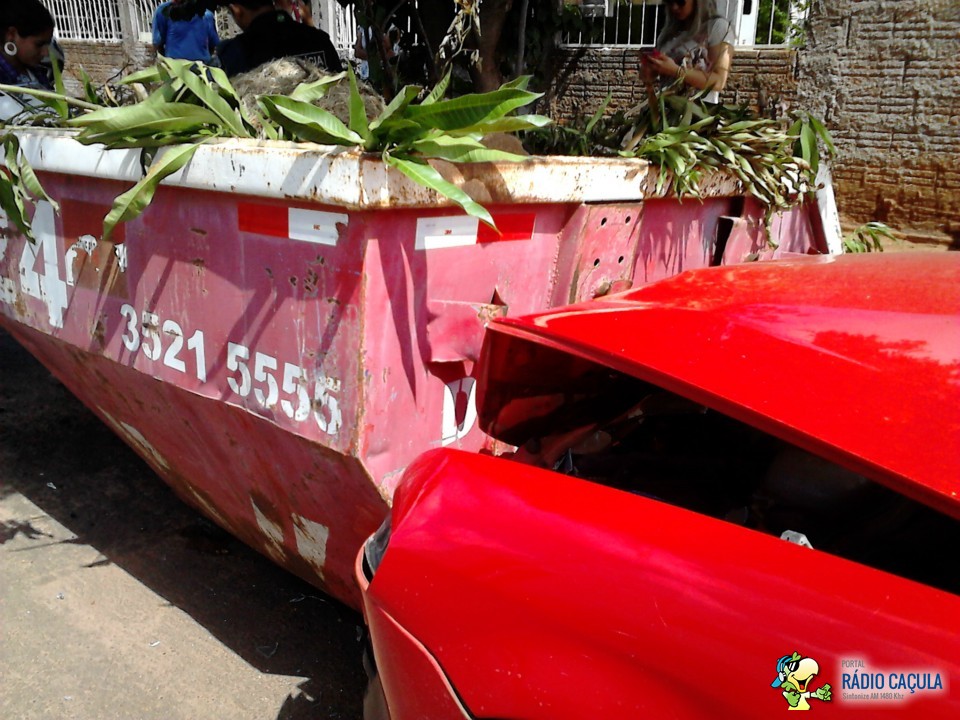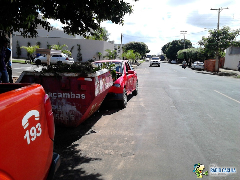 Com o impacto, o carro atingiu uma caçamba que se encontrava na rua Getúlio Garcia Marques.