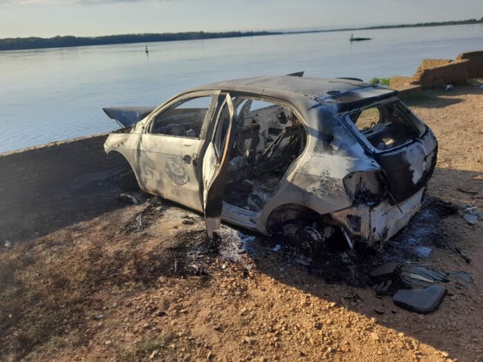 Após denúncias anônimas, Policiais Militares localizaram um veículo que foi furtado e incendiado nesta segunda-feira (6), em Três Lagoas.