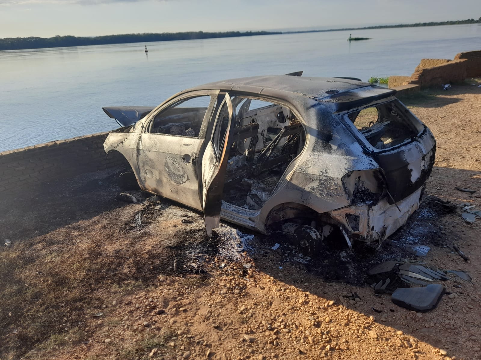 Conforme o boletim de ocorrência, denúncias via 190 (Telefone de Emergência da Polícia Militar), relatavam de que havia um carro incendiado no Bairro do Jupiá, às margens do Rio Paraná.