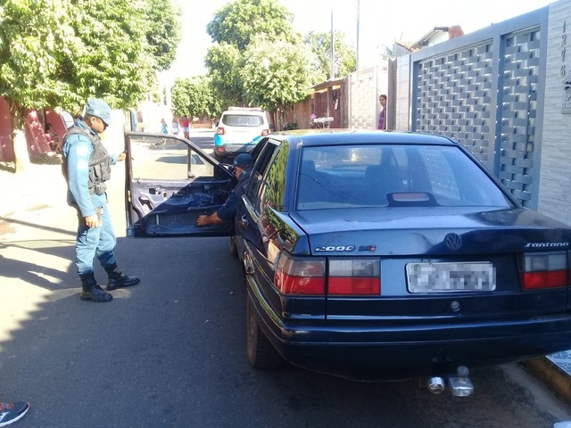 A polícia se deslocou até o local e encontrou o veículo, um Santana ano 2000, estacionado com as portas destravadas. Um dos vidros traseiros estava aberto e sem os forros das portas. Os policias então fizeram a checagem do veículo e constataram que o mesmo era produto de furto.