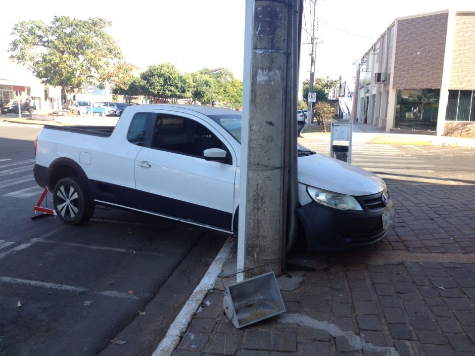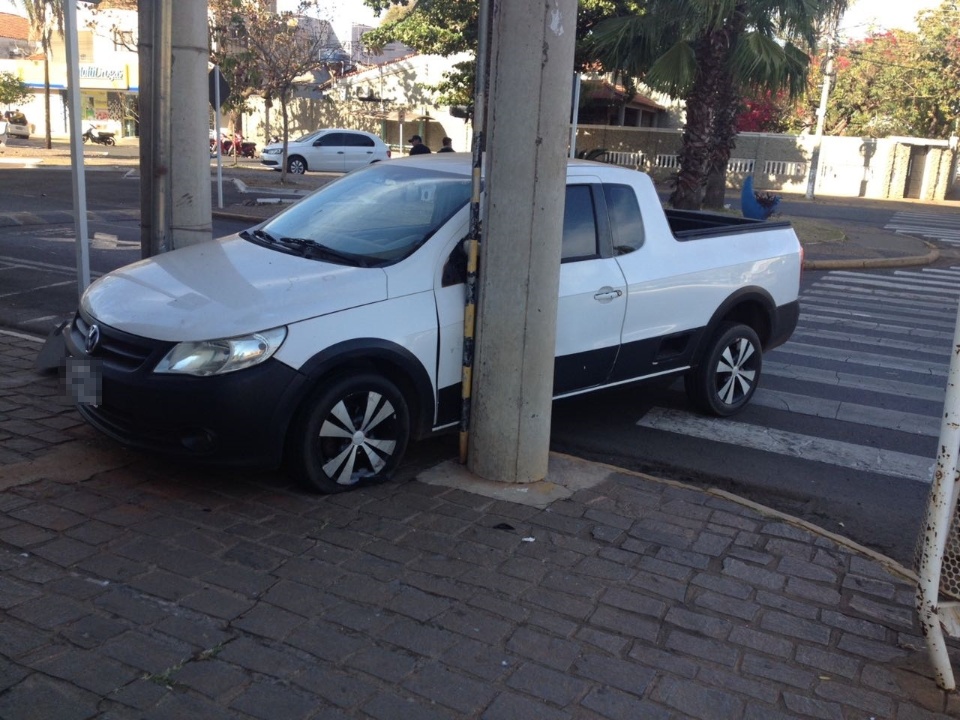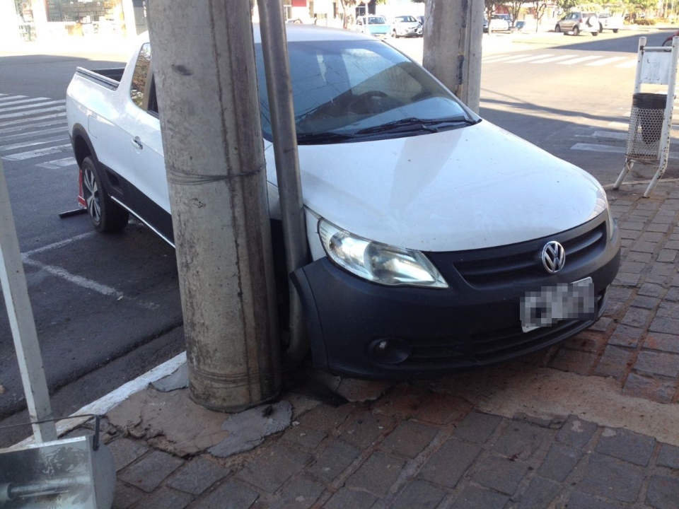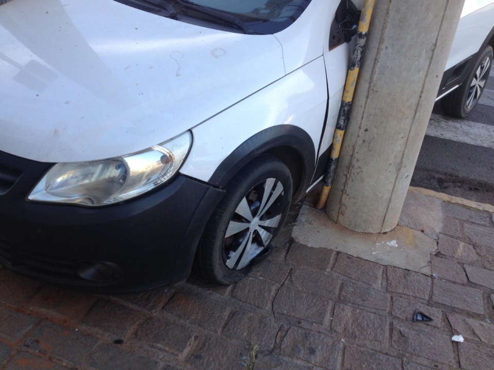 Na manhã deste sábado (14) um veículo com placas de Santa Rita do Pardo (MS) ficou preso entre dois postes na Avenida Capitão Olinto Mancini em Três Lagoas (MS) em frente ao prédio da Prefeitura Municipal.