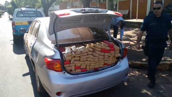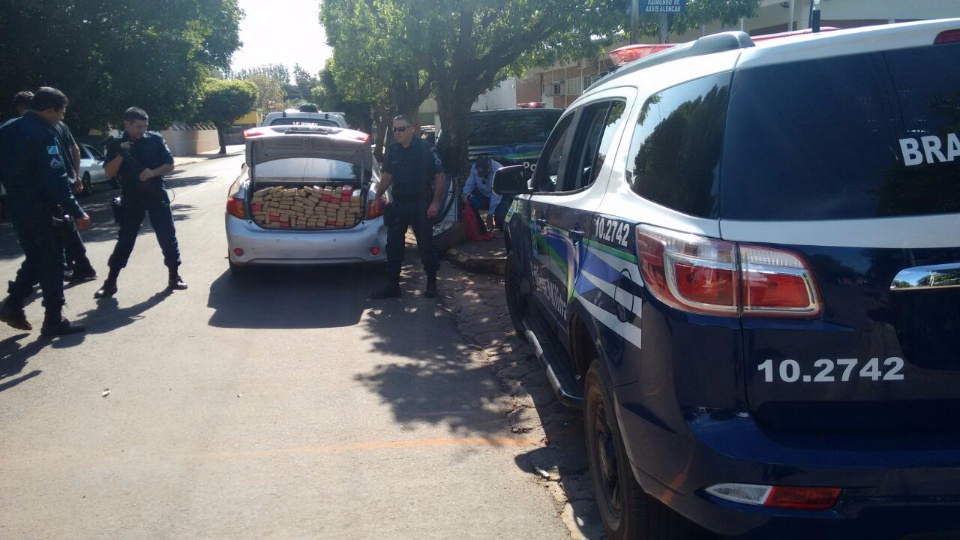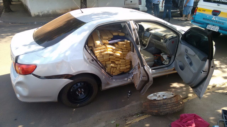 No interior do terceiro veículo foi encontrado, escondido no porta-malas e no banco traseiro 893 quilos de maconha.