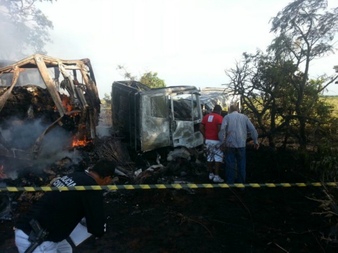 Até o momento tudo indica que o motorista da carreta que estava carregada de carne, invadiu a pista e acabou colidindo com a van.