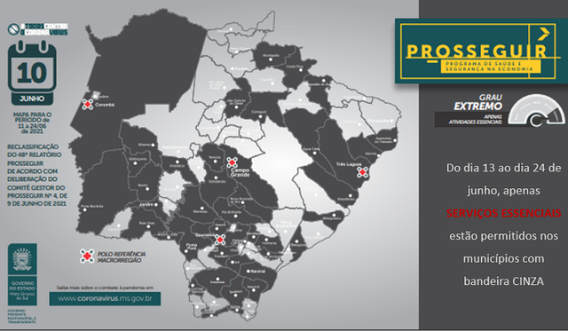 TRÊS LAGOAS (MS) A pandemia da Covid-19 acarretou numa série de regramentos para sociedade que podem salvar vidas. Para conter o avanço do contágio entre a população sul-mato-grossense e, também diminuir a fila de quem busca um leito de UTI (Unidade de Terapia Intensiva) nos hospitais do Estado, o Governo de Mato Grosso do Sul estabeleceu regras dentro do Prosseguir que norteiam a forma que cada municípios pode funcionar. A partir deste domingo (13), Três lagoas tem restrições mais rígidas por ter sido classificadas na bandeira Cinza. Veja aqui como funcionarão algumas atividades: