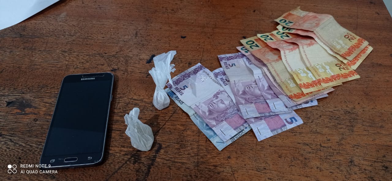 Os policiais da Agência Local de Inteligência (ALI) receberam a informação que o suspeito vinha realizando a venda de drogas na região e em buscas na região, tiveram êxito em localizar o homem, que portava R$ 147,00 em dinheiro e dois invólucros de “crack” (06 gramas), prontas para a venda.