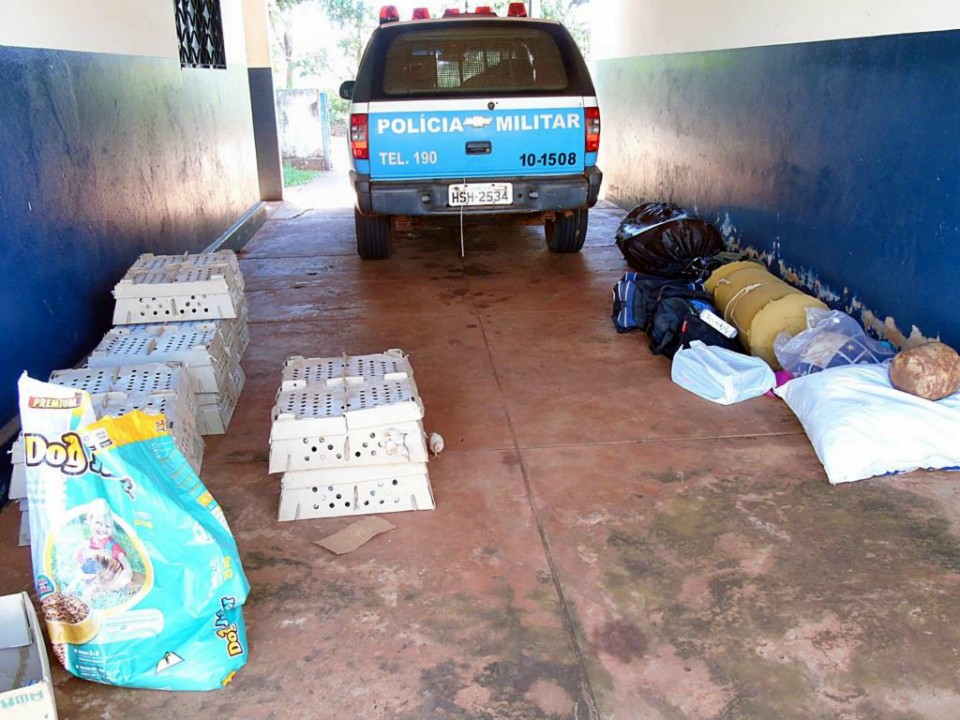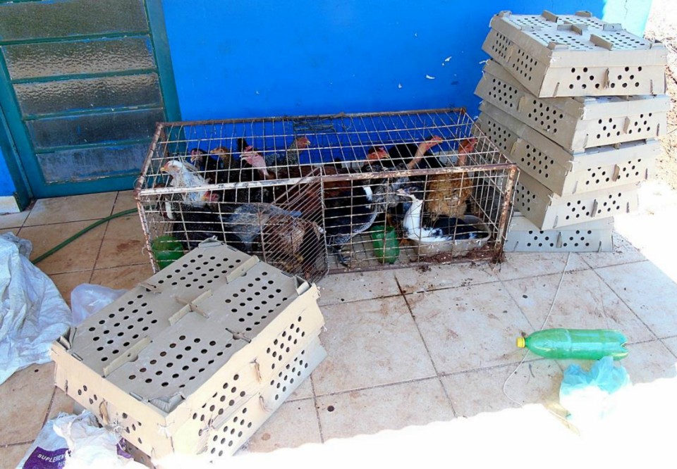 Com estas informações, a equipe de policia de Arapuá deslocou o autor até um posto de gasolina desativado no centro do distrito, onde havia um comparsa, cuidando de mais animais. Junto a ele foi encontrado aproximadamente 1400 pintinhos, uma gaiola de aço com 19 galinhas, três patos e um leitão.