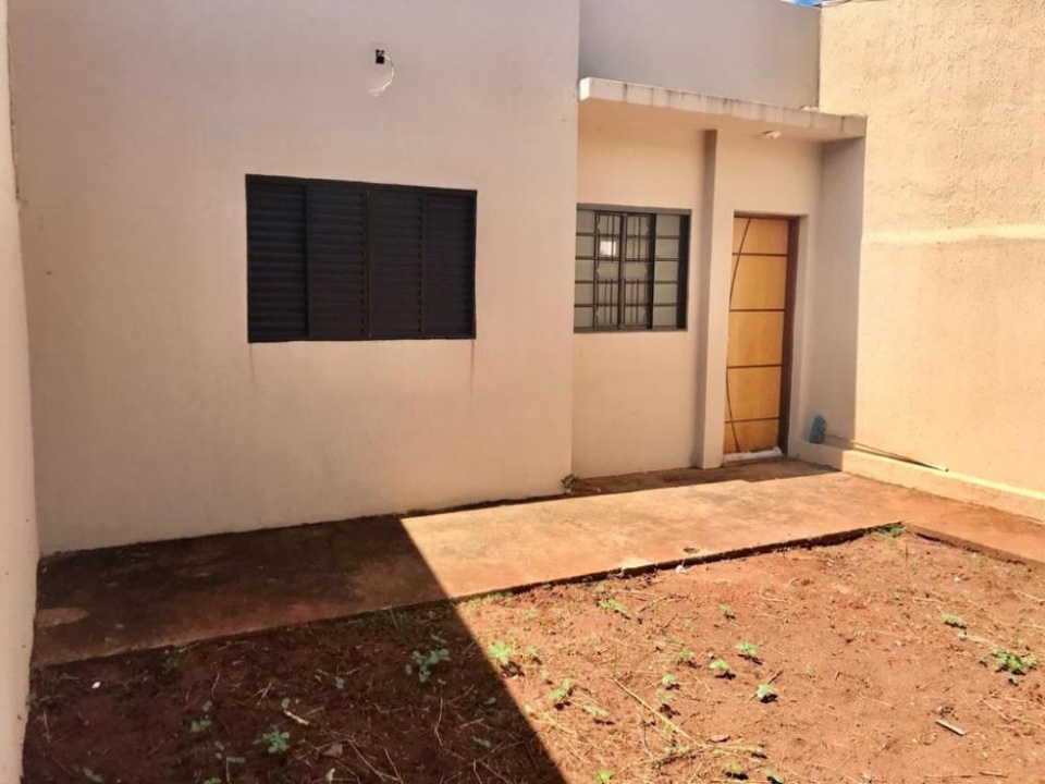 Vendo casa nova na cidade de Três Lagoas com piso em cerâmica, laje, dois quartos, banheiro, sala e cozinha conjugados, lavanderia nos fundos, garagem para dois carros, cerca elétrica e poço artesiano.