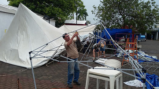 Começou a chover por volta das 15h00. Em poucos minutos, um forte vento atingiu o centro da cidade, derrubando parte da estrutura onde era montada a decoração natalina. Um poste de iluminação que fica no espaço caiu. Ainda na praça, várias barracas de uma feira do artesanato que acontecia no local, ficaram destruídas. Mercadorias foram danificadas.