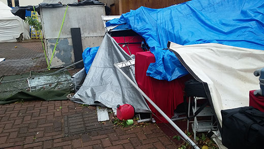 Vento danifica decoração natalina e destrói barracas de feira do artesanato