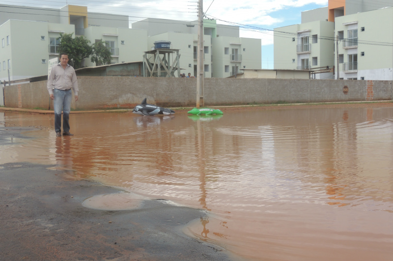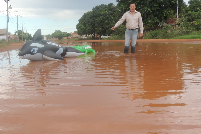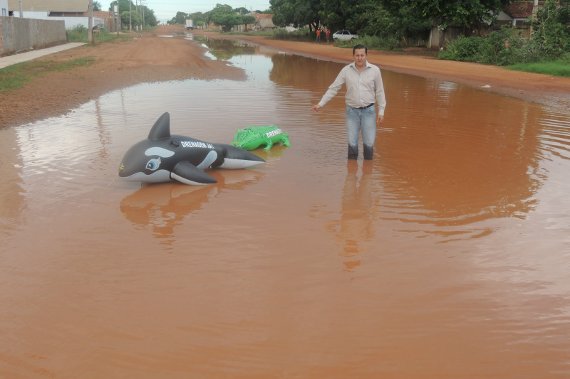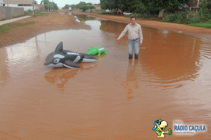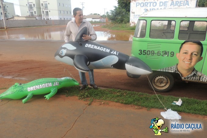 Há décadas, os habitantes da região enfrentam o problema no ponto específico, que vêm causando diversos acidentes e transtornos a população daquela região. Como forma de protesto, “Gil do Jupiá” entrou na água e colocou a “baleia Free Willy e o Jacaré da Lagoa” para chamar a atenção dos políticos e assim, reivindicar obras emergenciais de drenagem naquele ponto.