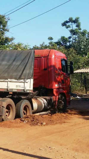 É comum notar na região a sujeira causada pelas centenas de carretas que usam o espaço da via pública como estacionamento para aguardar para descarregar soja na Empresa Cargil.