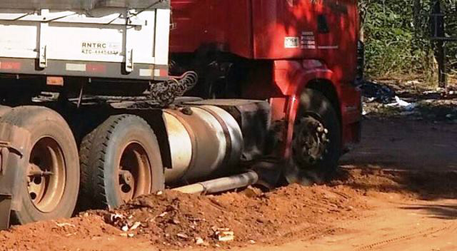 Uma carreta atolou na manhã desta quinta-feira (05) na Rua Egídio Thomé, na frente da Empresa Cargil, no bairro Jupiá. O fato gerou transtornos aos usuários da via de grande movimento que tiveram que utilizar um pequeno espaço da rua para trafegar do Jupiá ao Centro e vice versa.