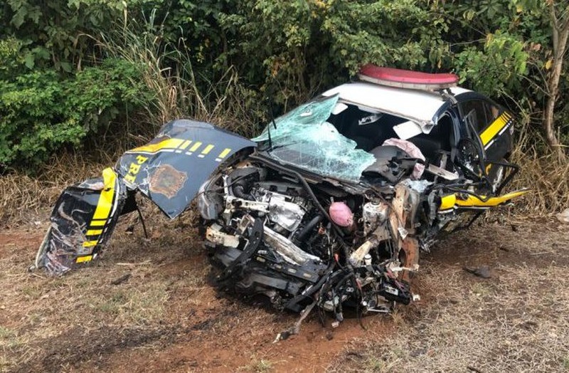 Na viatura estavam três policiais que encerravam o turno de trabalho, quando houve a colisão entre o carro que bateu na latera do caminhão ficando com a parte frontal destruída. Com o impacto da batida, a viatura foi parar às margens da rodovia.
