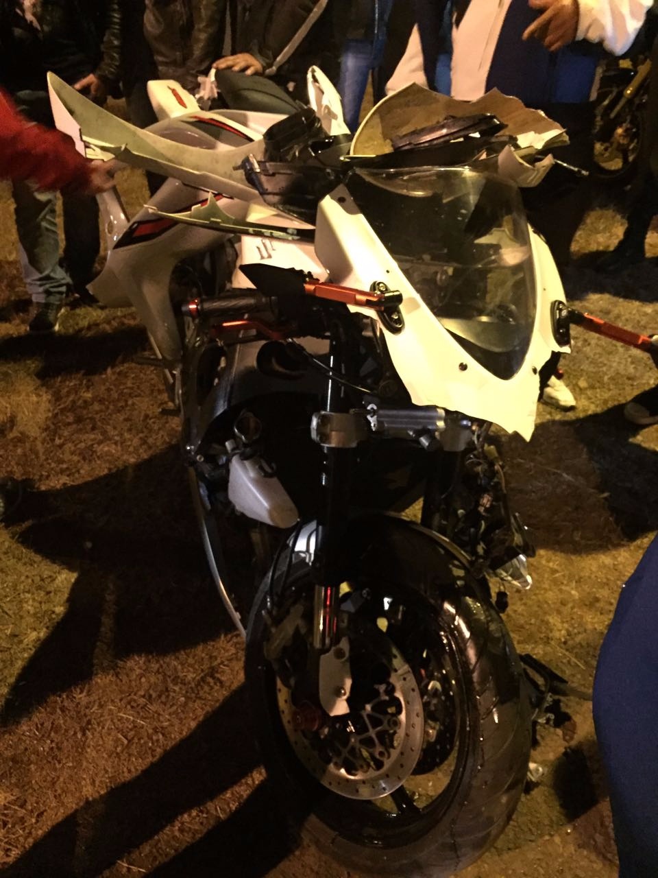 O acidente teria ocorrido na noite do sábado. Os pilotos teriam batido de frente no final de uma reta, próximo a um local usado como estacionamento. Um deles conseguiu escapar da batida ao saltar da moto onde estava, parado, conversando com amigos.