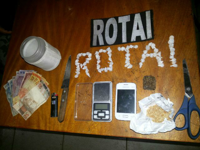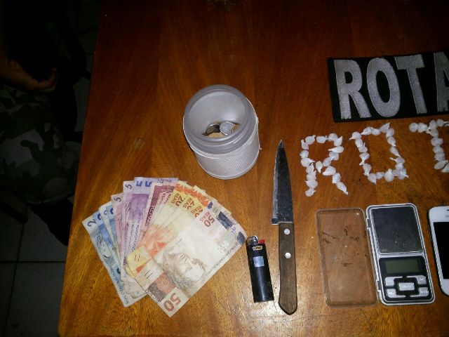 No local os policiais encontraram 72 trouxinhas de cocaína, alem de uma porção maior da mesma droga que ainda não havia sito preparada para a venda, no local foram localizados apetrechos característicos do embalo da droga, alem de cerca de R$800 em notas de baixo valor, característicos da venda de entorpecentes.